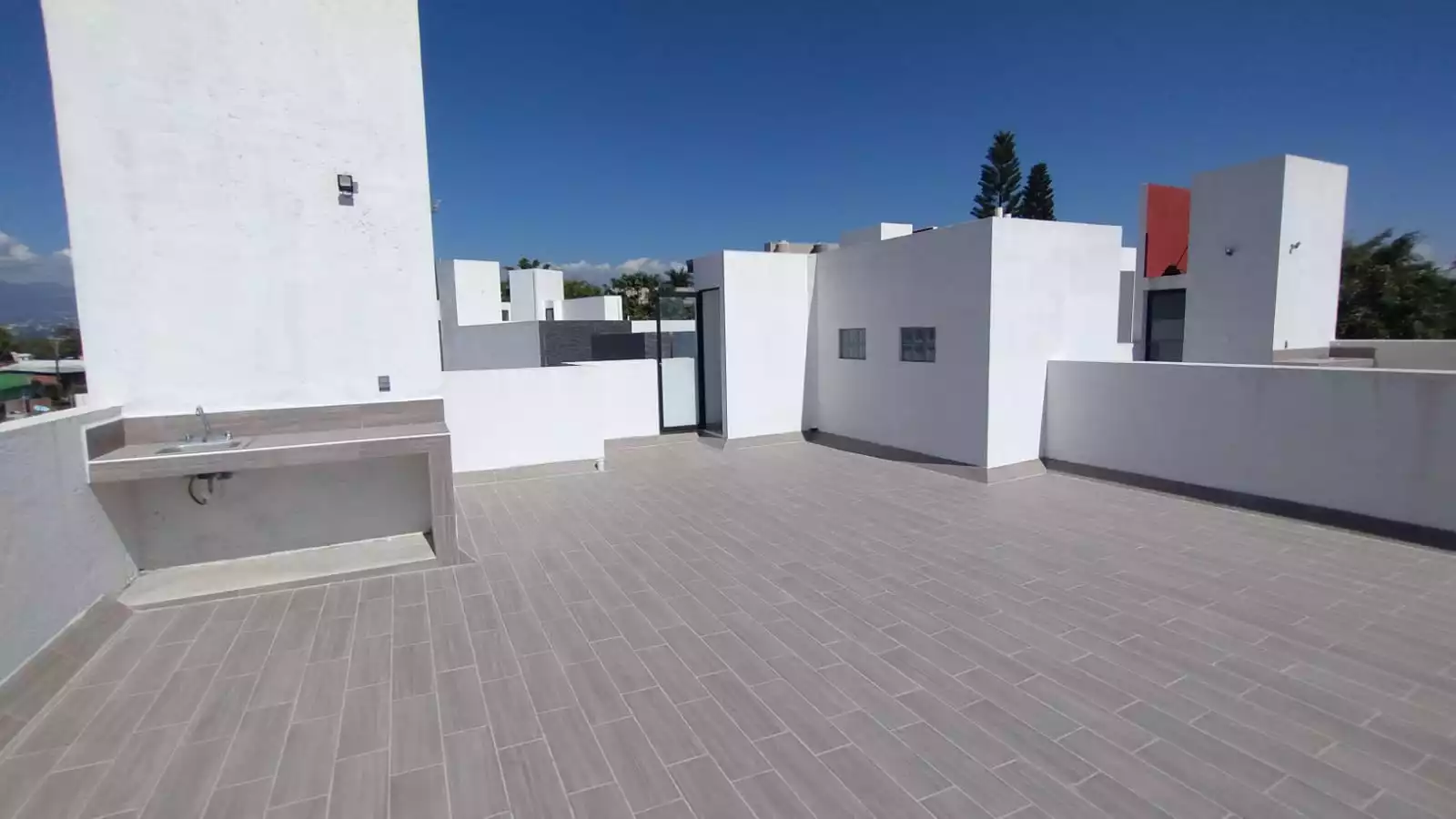 ROOF GARDEN CON MEDIO BAÑO, BARRA CON TARJA Y PISO FORRADO CON LOSETA