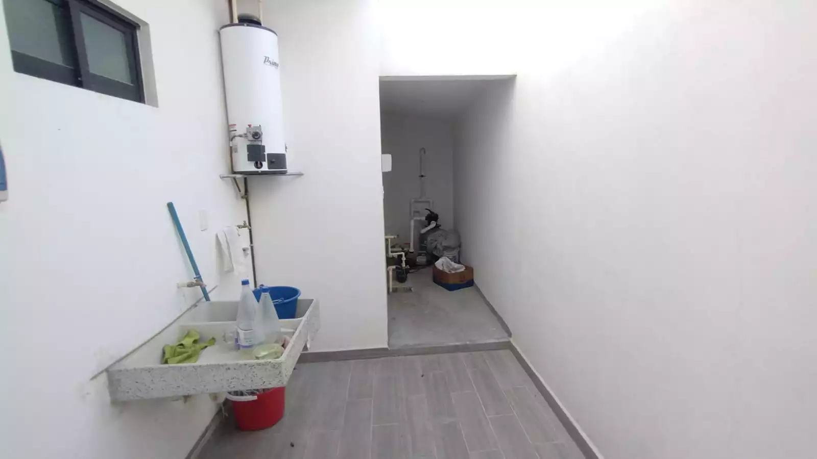SALA, COMEDOR, COCINA INTEGRAL CON CUBIERTA DE GRANITO, ESTUFA DE 6 QUEMADORES CON HORNO Y CAMPANA DE 90 CM CON EXTRACCION DIRECTA AL EXTERIOR, ISLA DE MADERA MOBLOX. PATIO, DE SERVICIO. RECAMARA Y BAÑO COMPLETO.