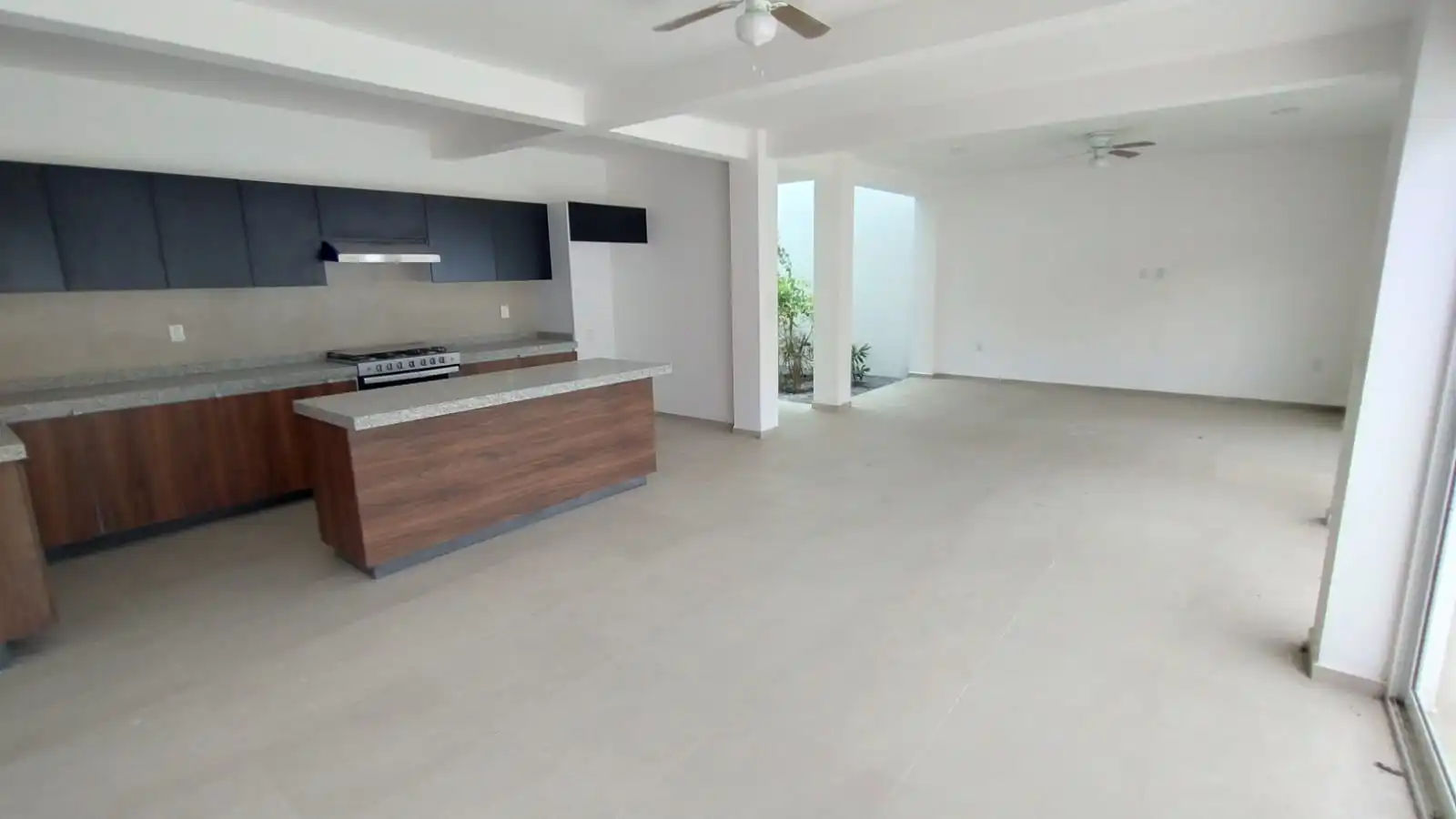- Cocina integral con isla, cubiertas de granito, tarja doble con monomando, estufa y campana.
