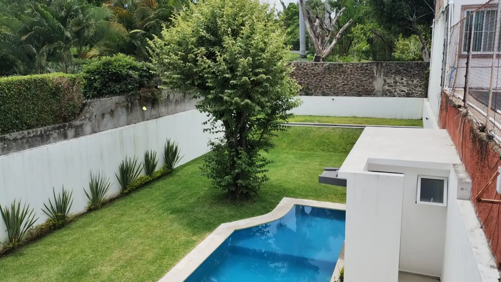 - Alberca de 9 x 4 x 1.40 con fuente de cascada