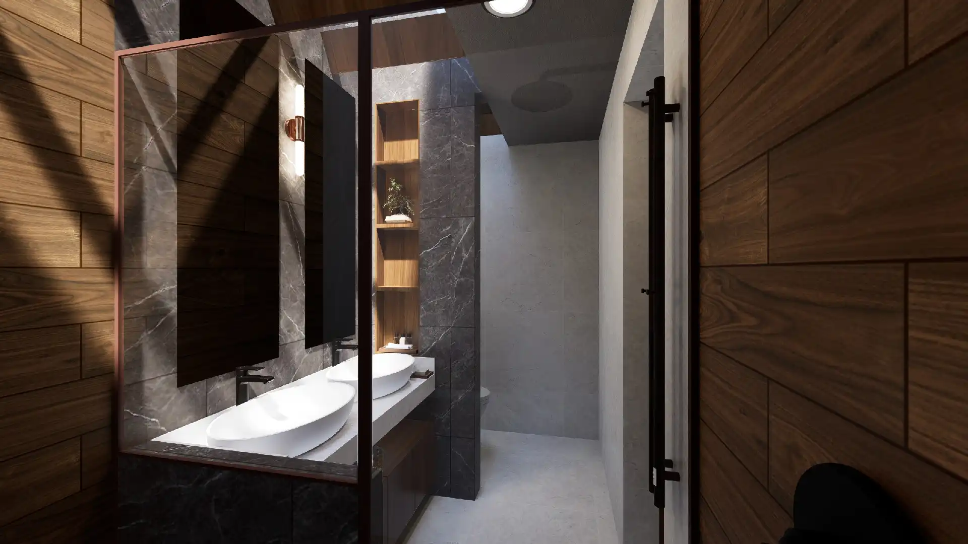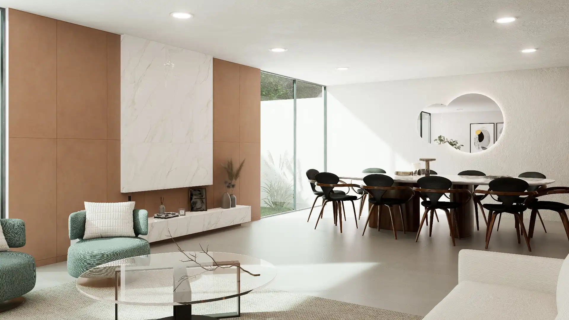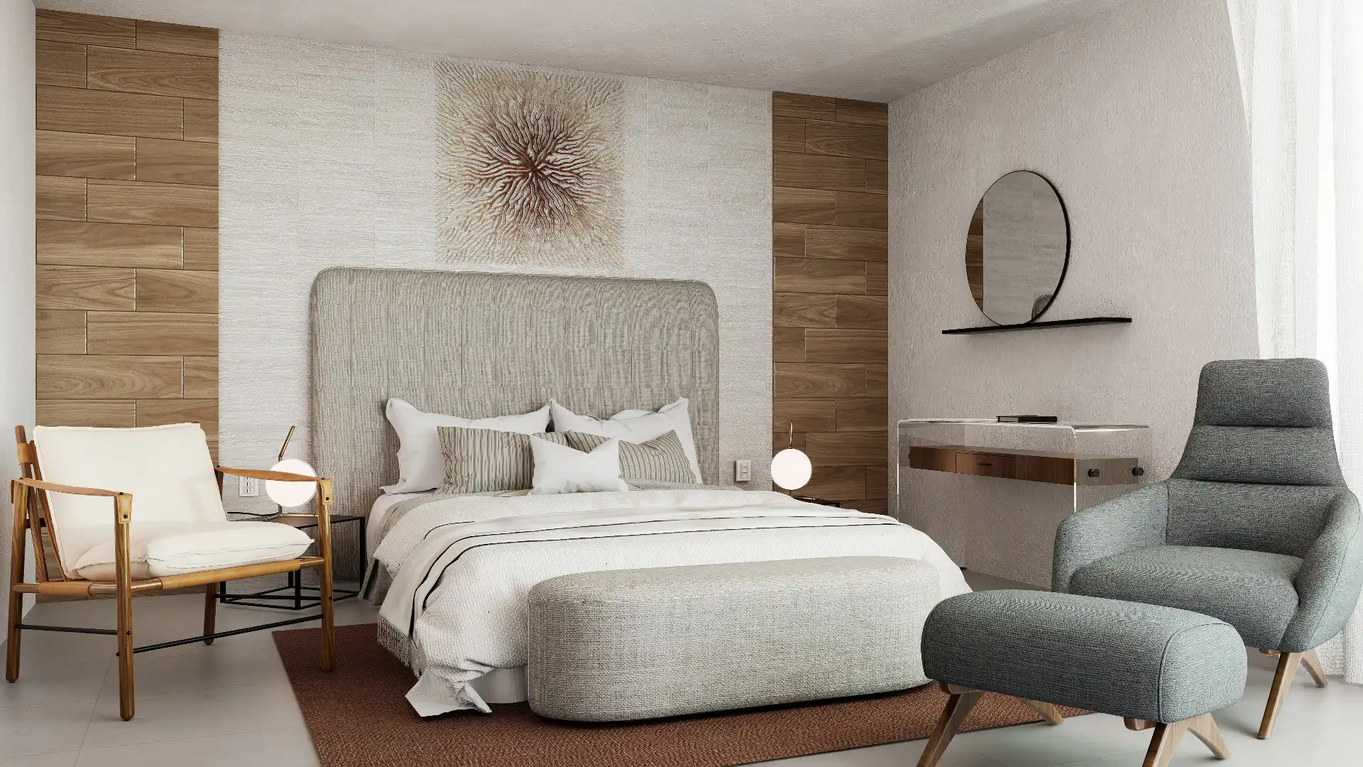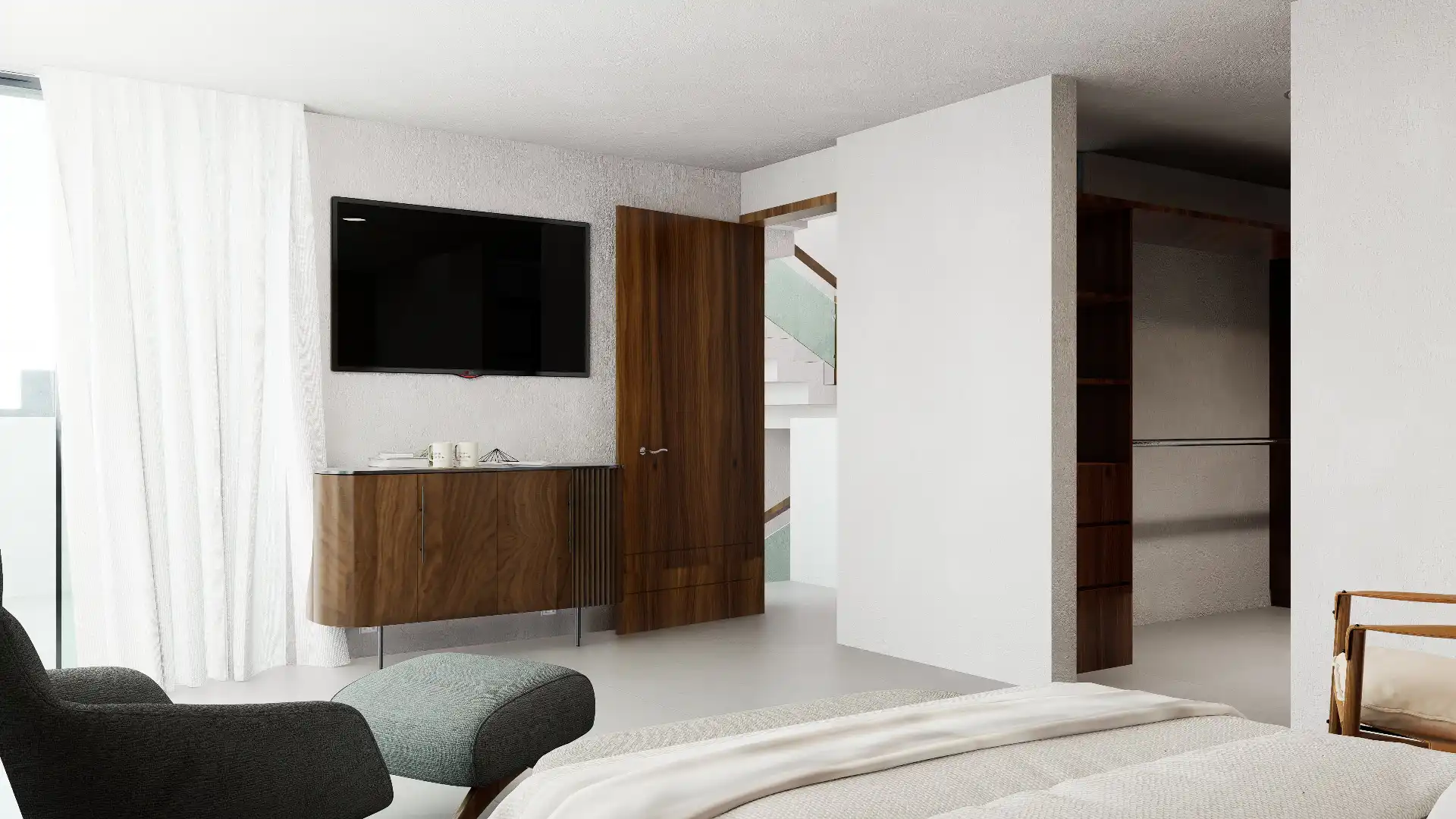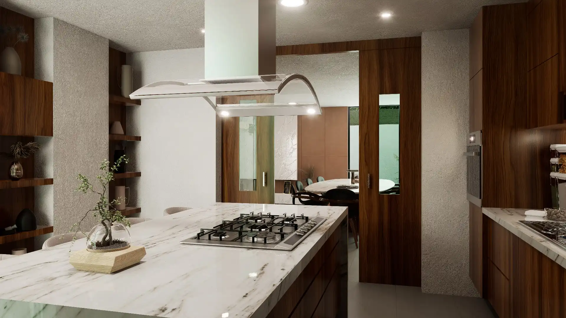 ACABADOS: Barandal de madera con cristal templado, canceles con mosquiteros, canceles de baño con cristal templado, llaves de baño marca Helvex, carpintería en parota y cedro, pisos Interceramic 60×60